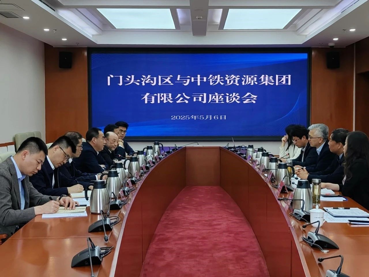 鲁和友、史渊首先对门头沟区委区政府长期以来支持服务企业所做的各项工作表示衷心感谢,并简要介绍了中铁资源当前生产经营总体情况。表示中铁资源将积极围绕门头沟区发展需求,尽己所能助力地区发展,为区域经济繁荣发展贡献力量。希望门头沟区能够进一步支持企业发展,强化双方沟通,在更多领域探索合作,实现更深层次的对接。