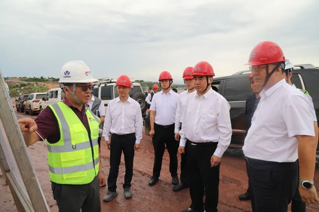 4月25日,中铁资源党委书记、董事长鲁和友到刚果(金)金沙萨环线项目开展实地检查调研,深入施工现场督导工程建设质量、施工组织部署、现场安全生产管控及施工进度推进等工作,集团公司副总经理、华刚矿业董事长李圣及相关人员陪同调研。