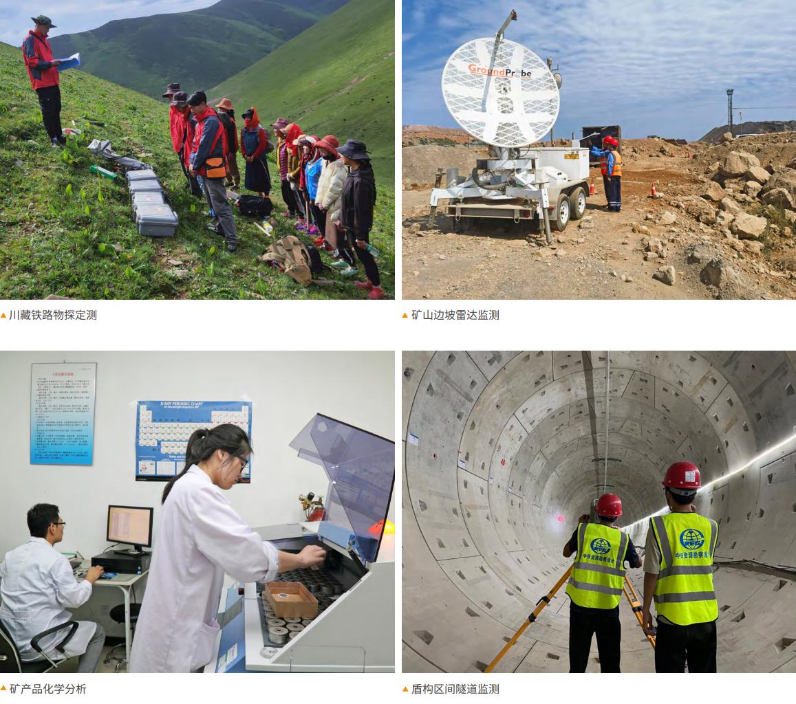 勘察设计公司经营范围涉及铁路、公路、市政、工民建、能源、矿产等领域, 在岩土工程勘察、工程物探、工程检测、在建桥隧路基施工监测、城市轨道交通 施工监测、岩土测试、地下管网探测、地形地基测量、区域物化探矿产勘查、矿 山高边坡监测、岩矿测试等领域都取得了丰硕的成果。